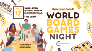 Join us for a high-energy night of strategy and community. Whether you are a pro or a beginner, come for the competition and stay for the vibes. Includes: Games, African Finger Food + Drinks (available for 50–100 HKD)