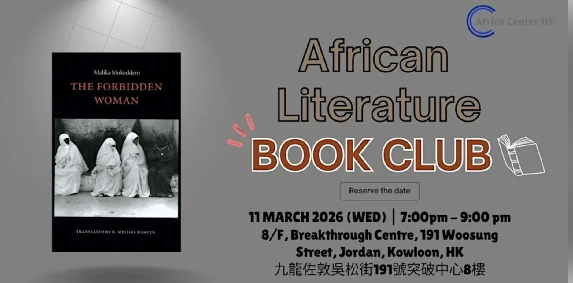 🗓️ Date: Saturday, March 28, 2026 ⏰ Time: 6:00 PM – 9:00 PM 📍 Location: Africa Center HK (8/F, Breakthrough Centre, 191 Woosung St., Jordan, HK)
